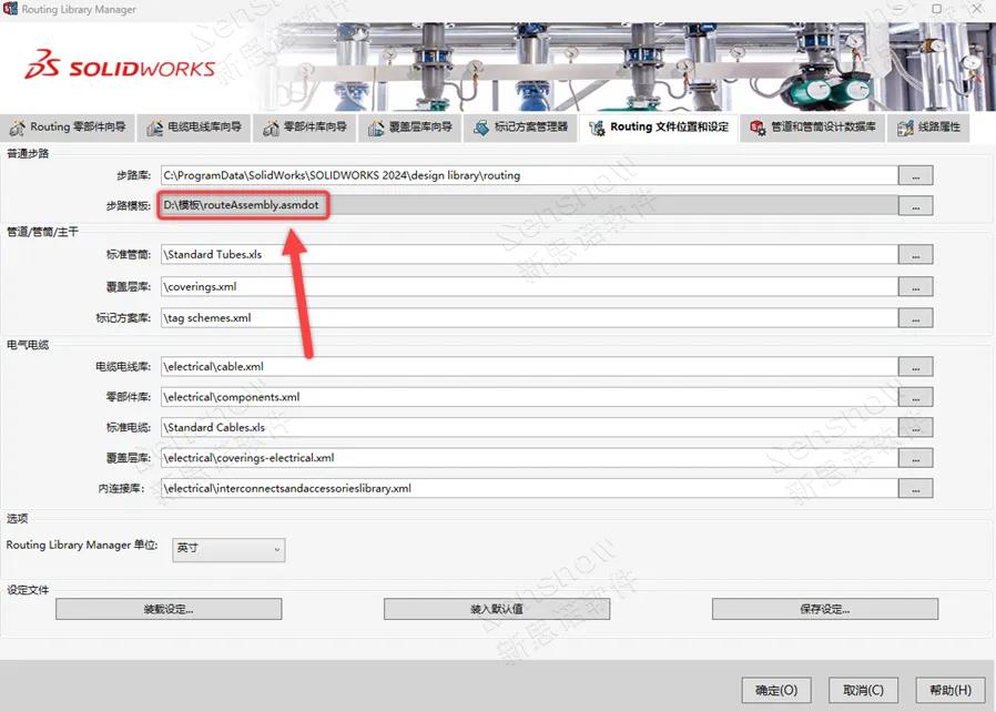 出现这个弹窗明显是找不到创建布路时所使用的布路模板了(routeAssembly.ASMDOT),布路模板是一种特殊的装配体模板,专门用于布路使用。按照正常的逻辑,在我们新建一个布路子装配体的过程中如果默认的安装目录下不存在布路模板则会在此处利用 SOLIDWORKS 后台程序自动创建,用户无感。那么出现用户的这个弹窗必然是不能利用 SOLIDWORKS 自动创建生成管路布路模板,或 Routing Library Manager 中所指定的默认布路模板路径无效或不可用!
