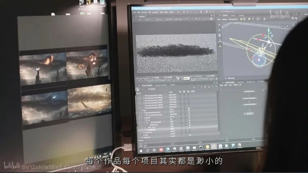 《哪吒2》的每一个动作都需要通过物理仿真来确保流畅性和真实性。电影中的一大“爆点”时刻,太乙真人被树藤困住的场景,树藤的生长动画,如何让藤条的动画更加灵活多变是制作组全力攻克的一大难题;“全体捕妖听令,上!”,随后成千上万的捕妖队员瞬间飞出,并在空中盘旋的画面让人记忆深刻。为实现这一效果,团队先制作了模型阵列,再结合群集动画,最终模拟出群集特效。