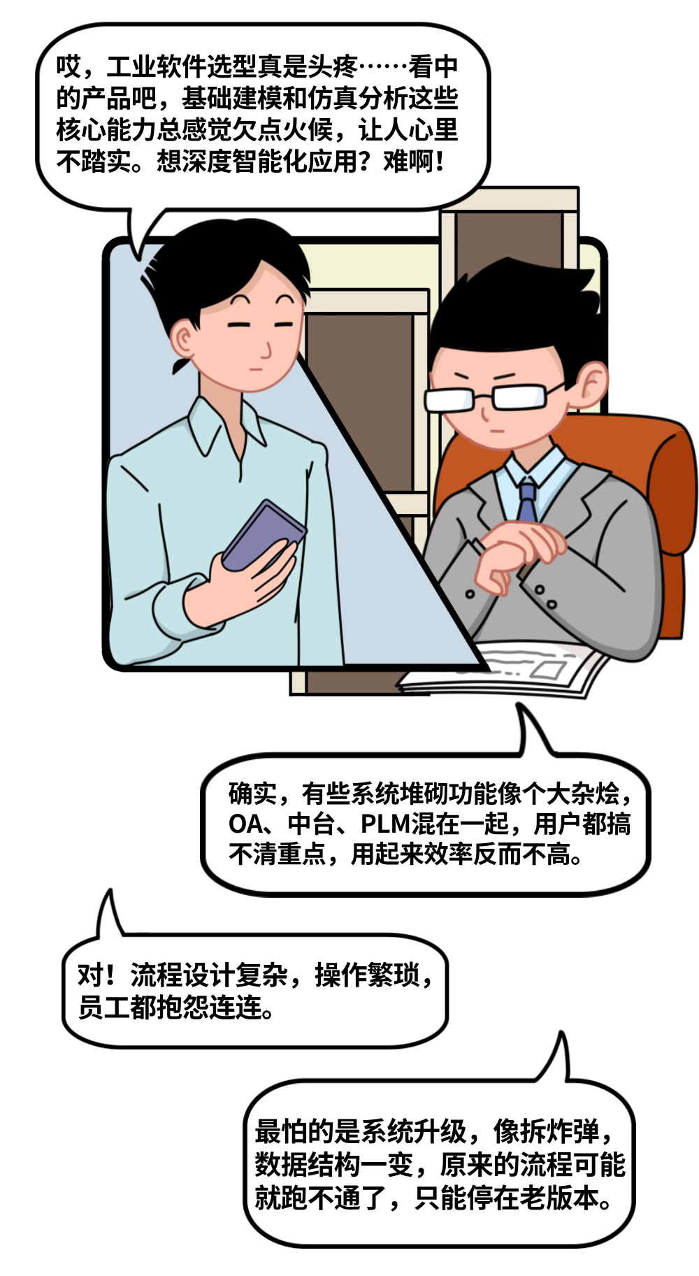 然而,当前许多企业在PLM应用过程中仍面临诸多挑战。部分国产PLM系统受限于核心技术积累和底层架构,在复杂建模、深度仿真、大规模协同等关键能力上存在不足,难以支撑企业向智能化、数字化转型的更高需求。流程设计复杂、用户体验不佳导致用户接受度低,系统升级困难、版本管理风险大等问题也困扰着企业。同时,系统间集成困难、生态封闭,难以与企业现有的ERP、MES等系统以及未来可能引入的IoT、AI等新技术无缝协同,形成数据孤岛,阻碍了整体数字化价值的释放。企业在选型和应用时,常常陷入对系统稳定性、长期演进能力以及实际落地效果的困惑。