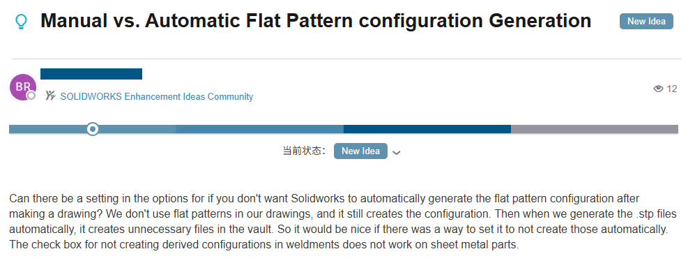 但非常多的用户反馈:希望禁用掉钣金件、焊接件自动创建派生配置的功能!一方面是因为所在企业的 PDM/PLM 集成规则导致多配置不便于管理;而另一方面是这种默认的工作流并不适用于我们国内企业的工艺制造。