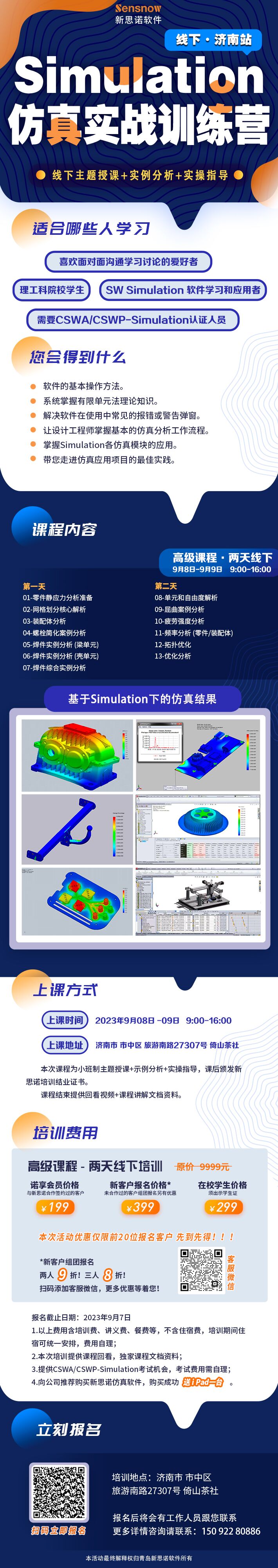 Simulation仿真实战训练营是新思诺打造的线下精品付费专业培训,针对SOLIDWORKS Simulation软件,由高级技术顾问指导授课,结课后颁发证书,获得了工程师们的认可与好评。